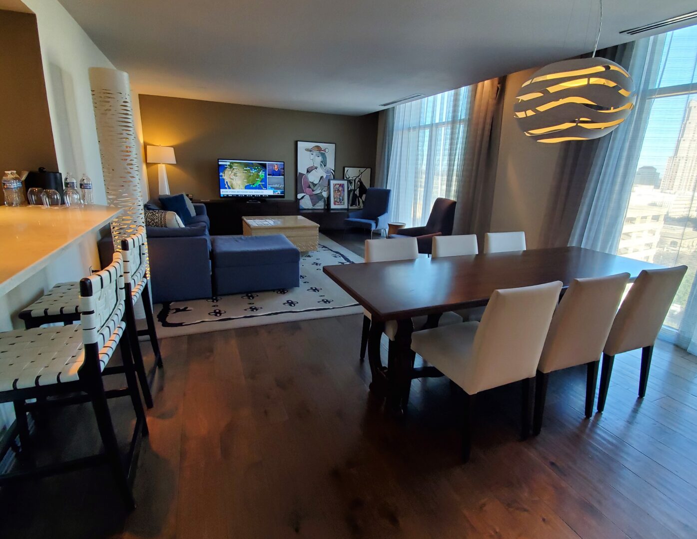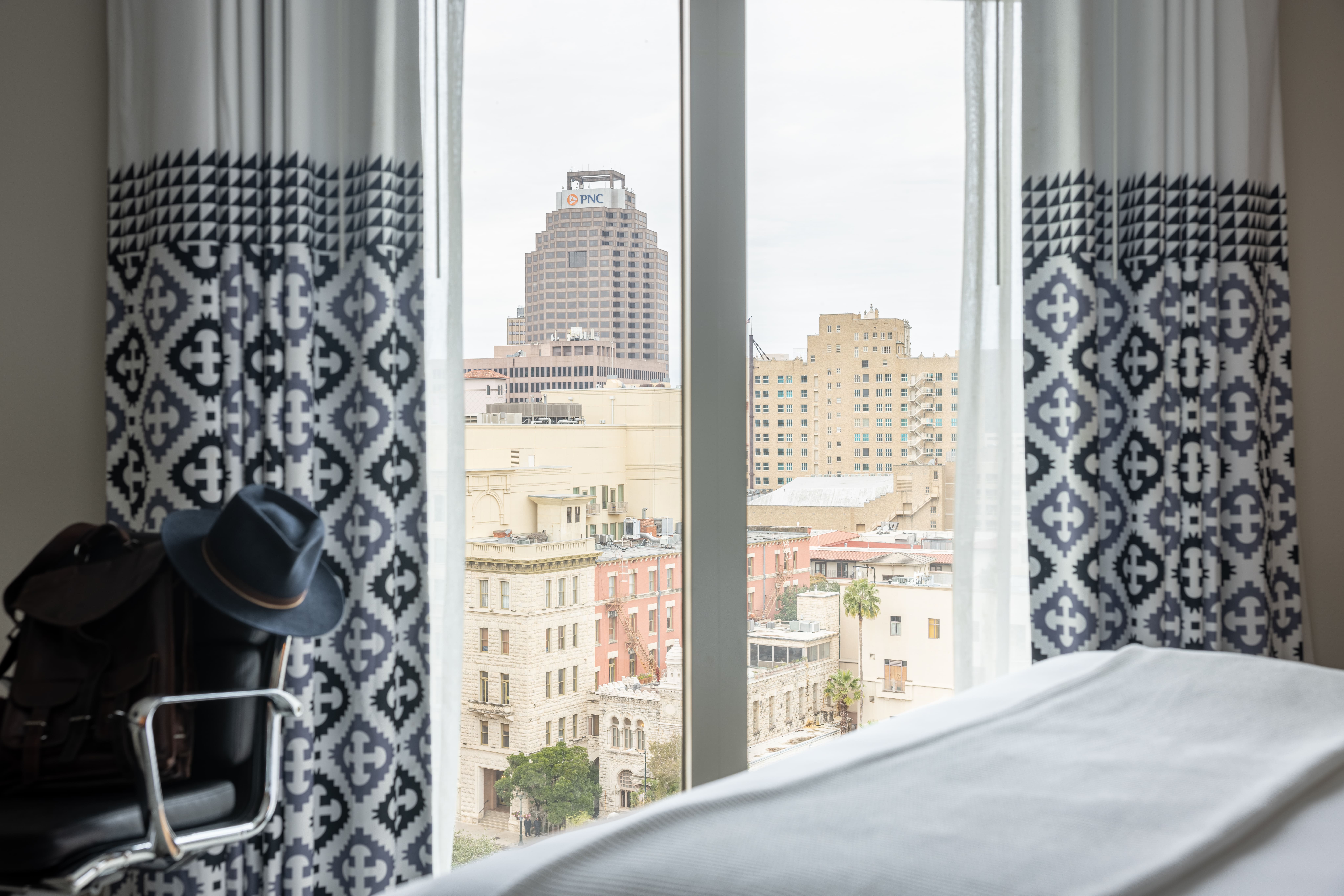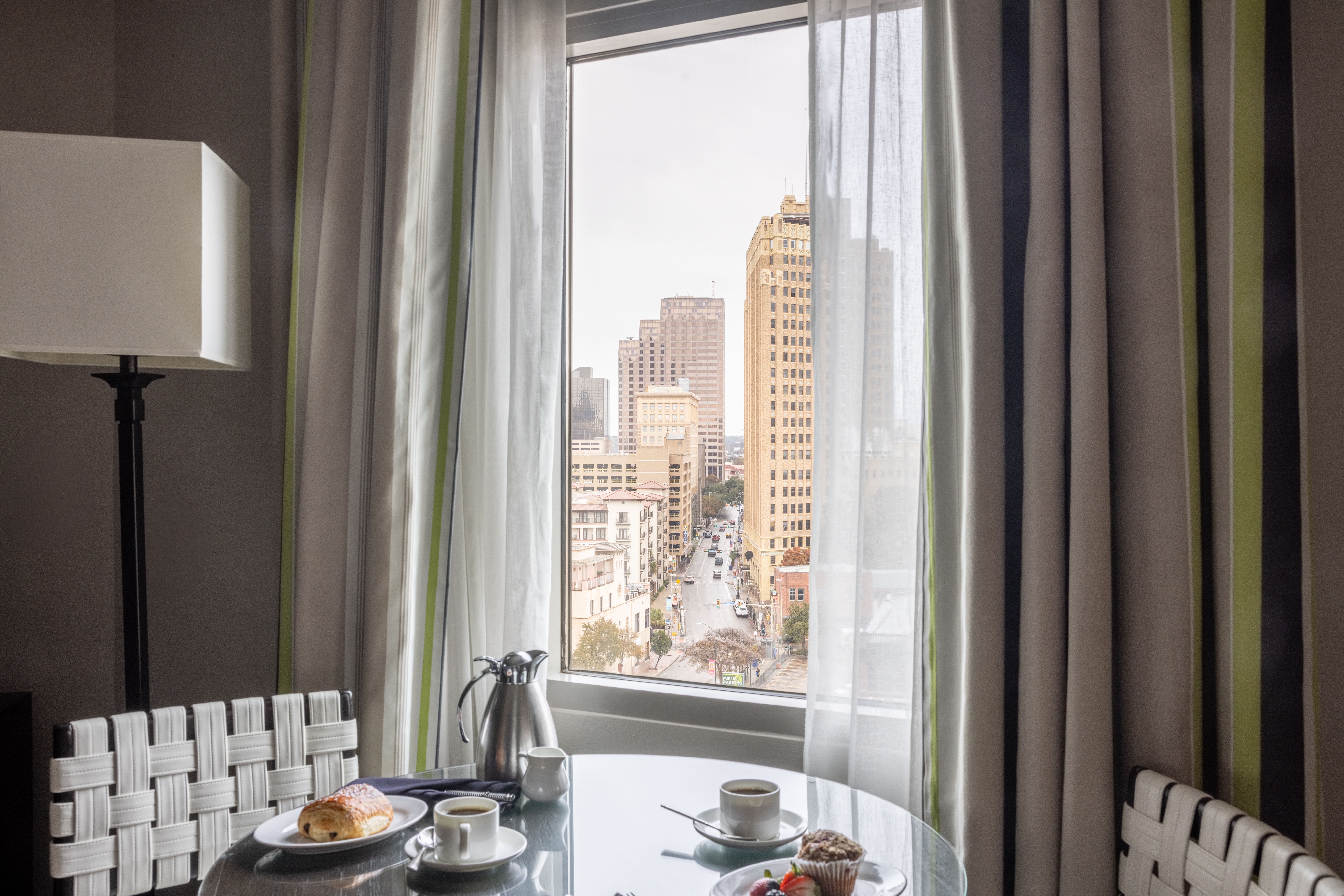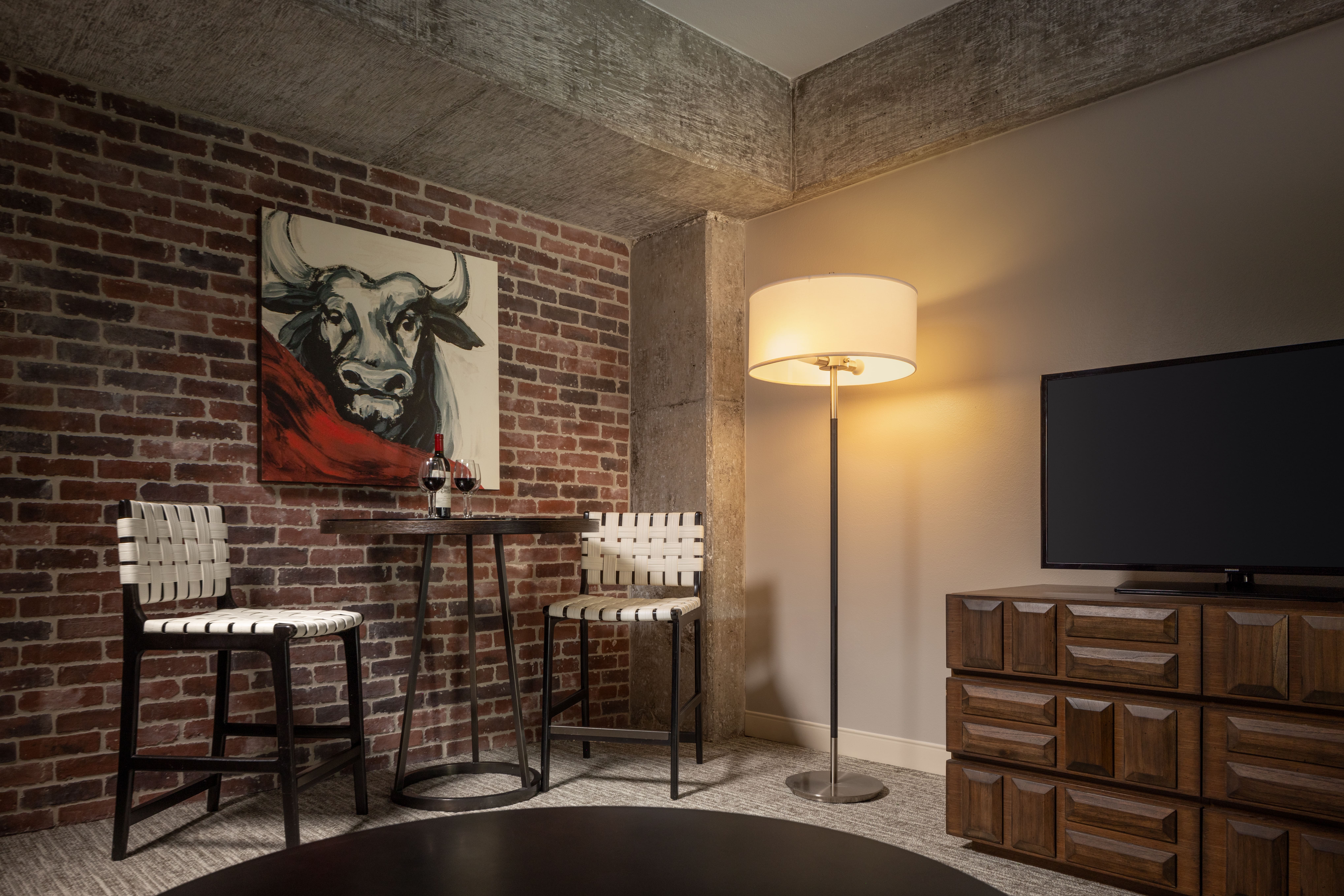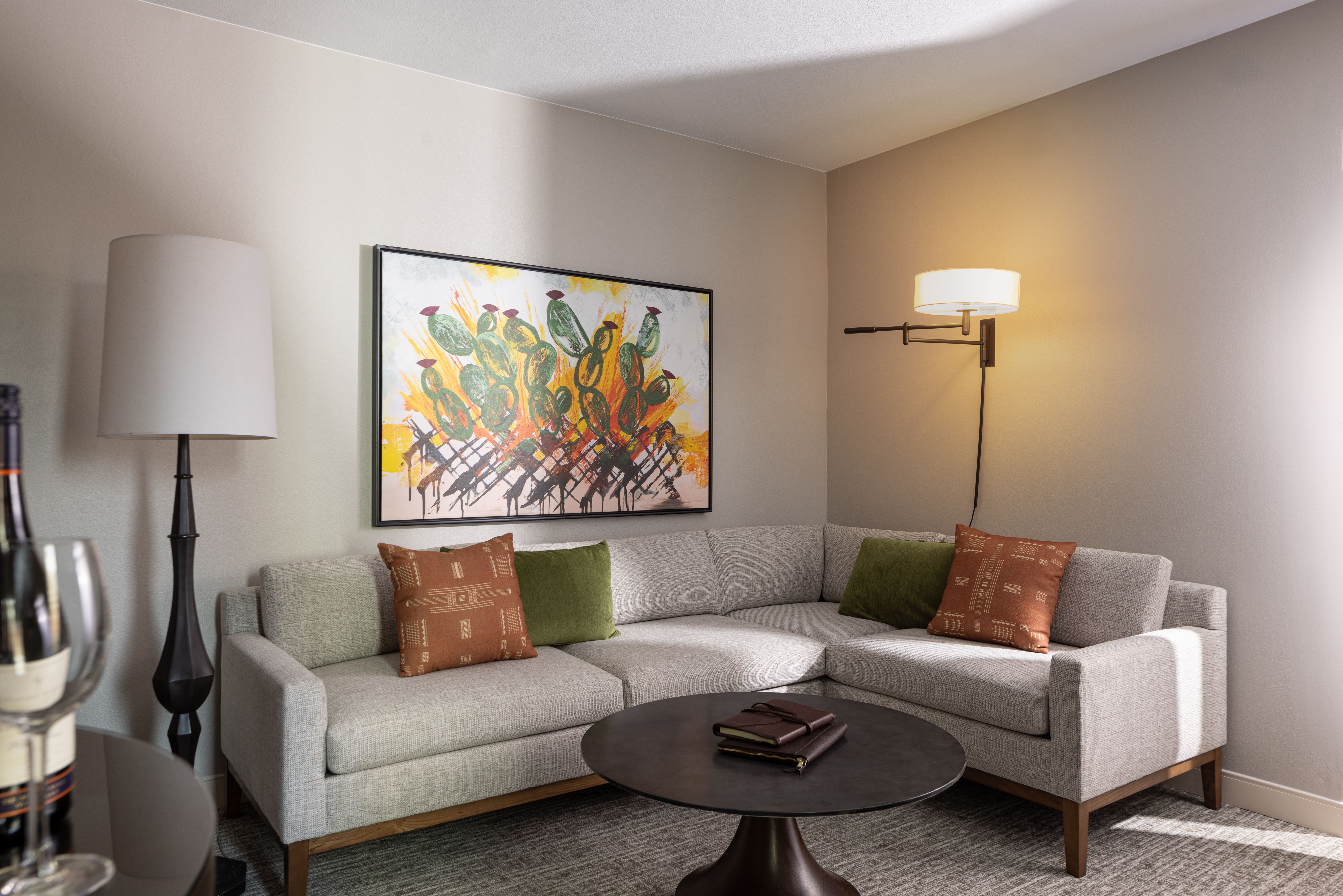 Kick your feet up in a cozy Cityview Suite, adorned with locally inspired artwork and stylish accents. Featuring a separate living area, the spacious bedroom, outfitted with one king or two full beds, offers scenic views of the colorful San Antonio city skyline.