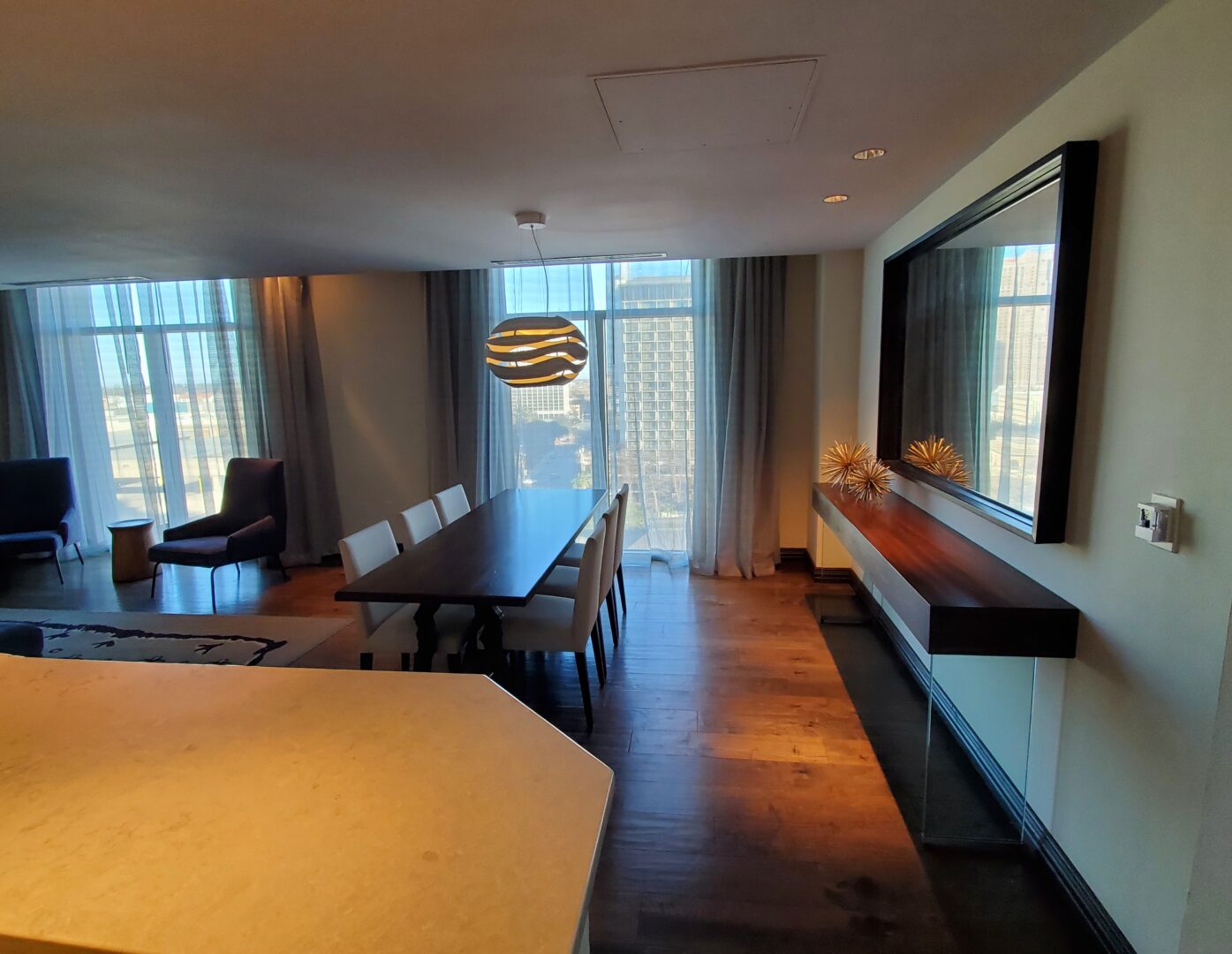 Make yourself at home in a contemporary Riverview Suite, featuring a spacious living area and separate bedroom with one king or two full-sized beds. Floor-to-ceiling windows overlook the Riverwalk while cozy nooks invite you to unwind.