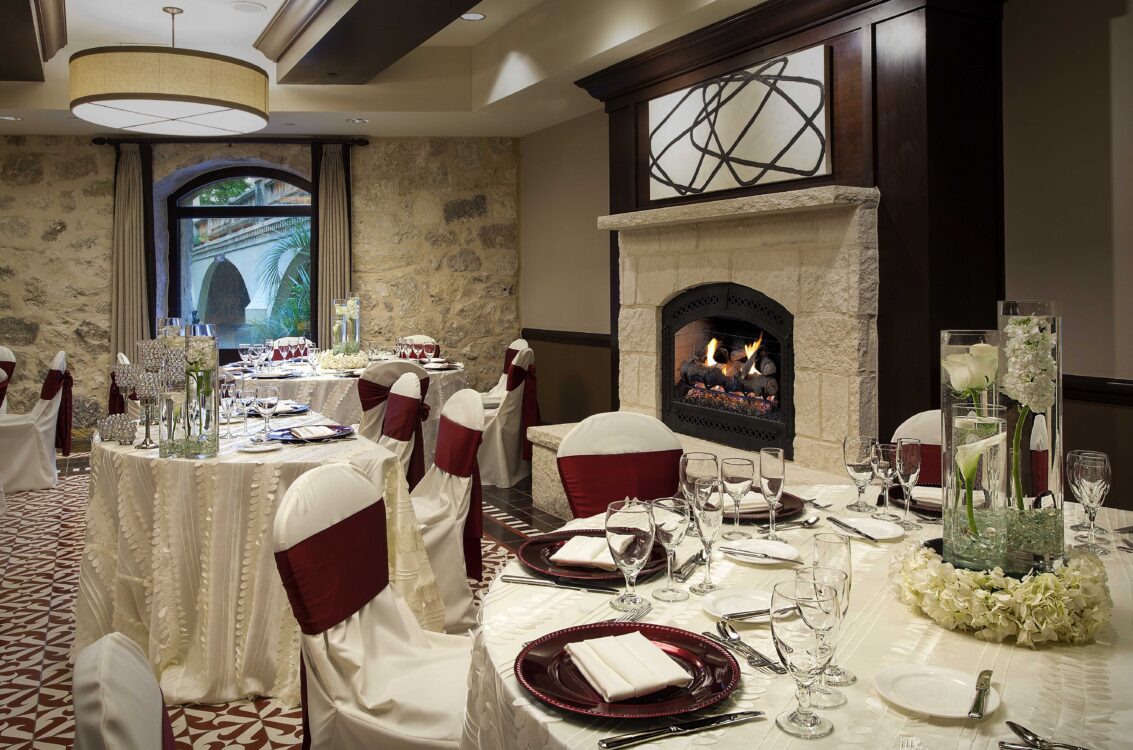 Featuring bold Spanish tiles and a romantic fireplace, the stunning Cypress Room on the river level is a picture-perfect backdrop for weddings and bridal celebrations.